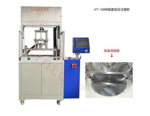 圓盤低壓注塑機:鎖模方式為圓盤式,增加了注塑效率,適合不到尾線的低壓包膠注塑。