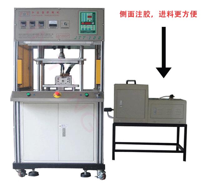 單工位低壓注塑機(jī)有:頂部注膠、側(cè)面注膠和無膠管三個型號。因為機(jī)型是低壓注塑機(jī)中最小的,所以我們暫且可以把它歸類到小型低壓注塑機(jī)。